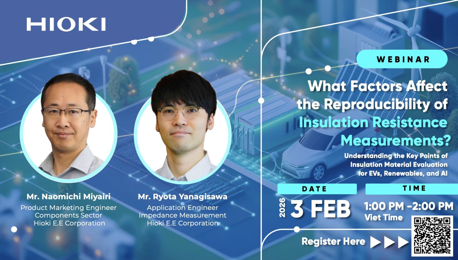 Trước những yêu cầu kỹ thuật và tiêu chuẩn ngày càng khắt khe, Hioki mở đầu chuỗi webinar kỹ thuật năm 2026 với các giải pháp và góc nhìn thực tiễn, hỗ trợ kỹ sư nhận diện, kiểm soát và cải thiện độ lặp lại trong phép đo điện trở cách điện.
